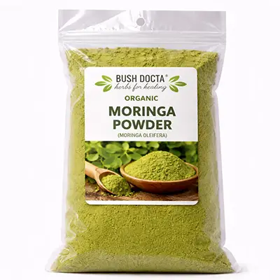 Moringa, often called the “Miracle Tree,” is a nutrient-rich plant traditionally used throughout Africa, the Caribbean, India, and Southeast Asia. Known for its vibrant green leaves and naturally occurring vitamins and minerals, moringa has long been enjoyed as part of daily wellness and nourishment traditions. Our Bush Docta Organic Moringa is carefully dried to preserve its deep green color and natural integrity, making it ideal for teas, smoothies, and herbal preparations. (4 oz | 112 g)